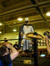 A scene from Spartacus? Cirque du soleil gone askew? Nope. It was a one-of-a-kind fundraiser at New Rochelle High School Saturday night benefiting the girls basketball team, part of a line-up of pro wrestlers by the New York State Wrestling Federation.