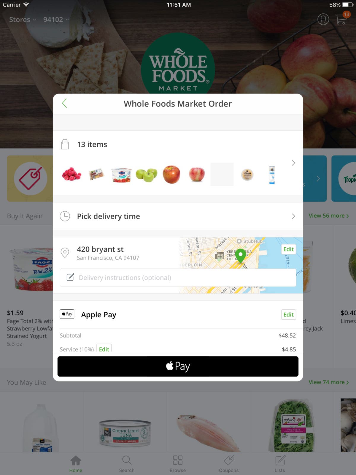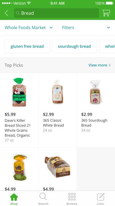 Customers can use the Instacart website or its app to fill their virtual shopping cart. Instacart shoppers pick the items and deliver them straight to their door.