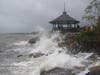 The waters in the Long Island Sound were high at Harbor Island Park as well as in Horseshoe Harbor in Larchmont, where an ominous sky threatened yesterday afternoon.