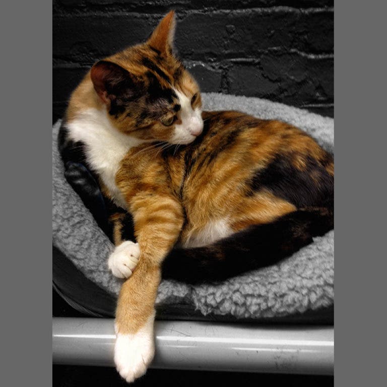 With four cats of her own—one of whom was adopted from NRHS—Pollaert was aware that some of the cats might be skittish around imposing or loud camera equipment so, instead, she used her iPhone’s camera to capture the cats in playful, pensive or quiet moments. One cat steadfastedly refused to have his picture taken so, instead, she adopted him.