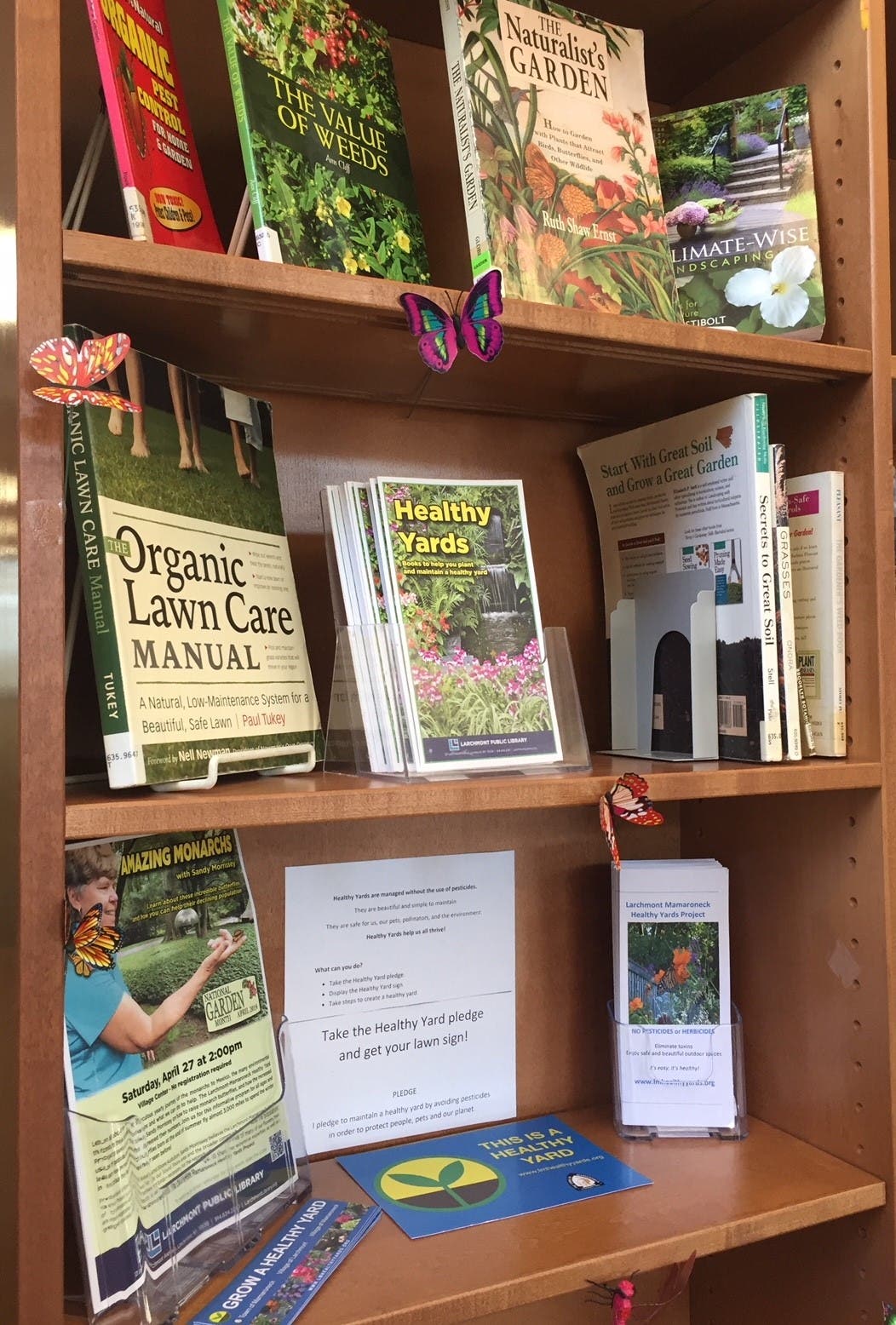 As co-sponsors of this event, the Larchmont Library and the Larchmont Mamaroneck Healthy Yards Project have created a reading room exhibit featuring books and guidelines about creating gardens that ensure the well-being of people, plants and wildlife. The newly formed, volunteer Larchmont Mamaroneck Healthy Yards Project is a collaboration of the Town of Mamaroneck Sustainability Collaborative, Village of Larchmont Environmental Committee and the Village of Mamaroneck Committee for the Environment. It is dedicated to helping residents maintain safe, appealing and sustainable lawns and gardens without the use of pesticides and herbicides, according to a spokesperson.