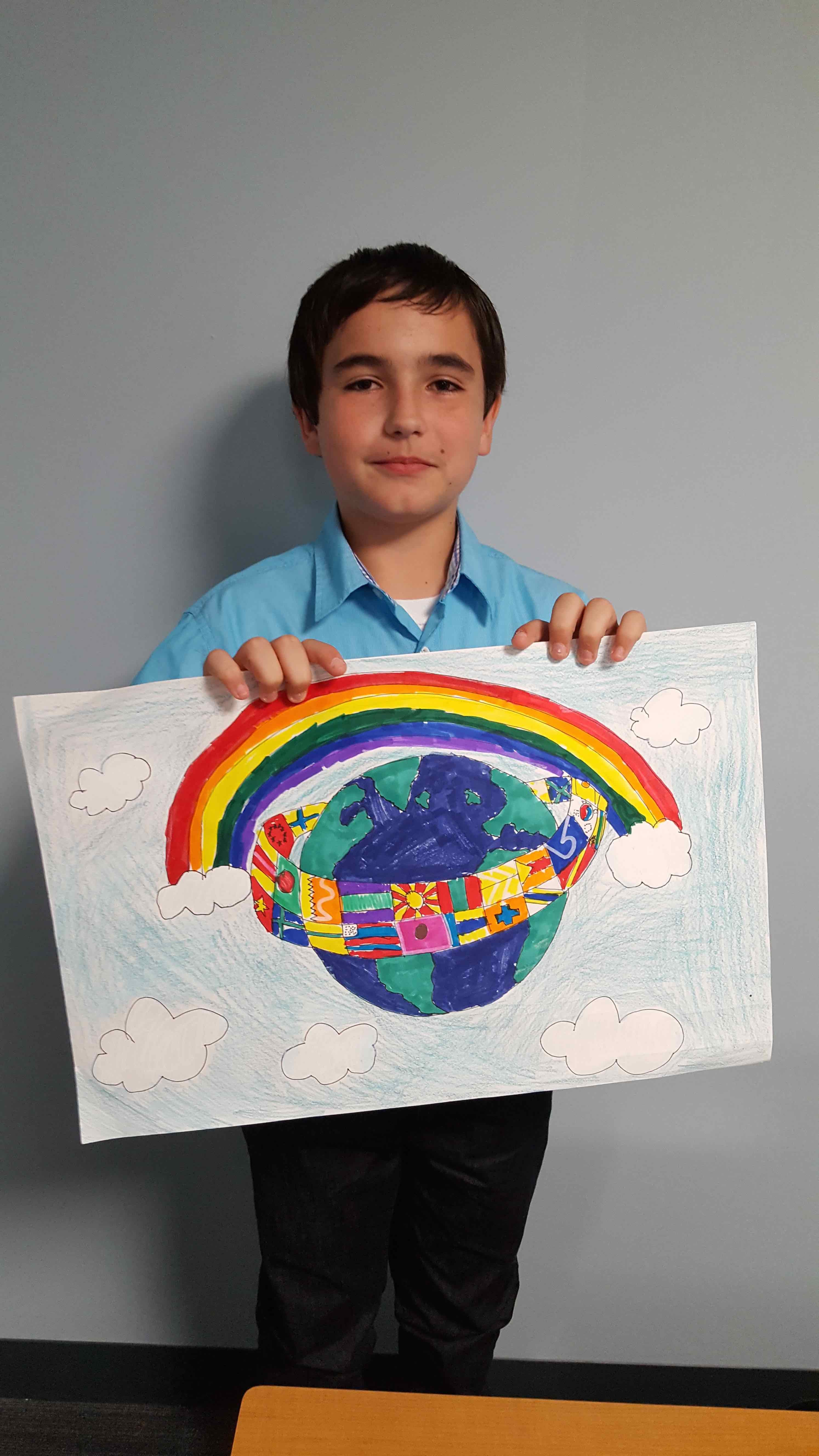 “Marc’s artwork stood out due to the airy feeling of his poster’s background,” said his art teacher, Jennifer Dallow, who teamed up with fellow art teacher Trisha Appel to encourage students to enter the competition. “He intentionally did not clutter the background, thus including a peaceful sky to cradle his earth image. He was very focused while working on the poster and I was inspired by his dedication.”
