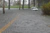 At the southern end of Harbor Island, the driver of a white SUV struggled to keep his car afloat on Rushmore and Orienta Avenues, as a fleet of Village of Mamaroneck fire and police rushed in to rescue the vehicle from uncertain waters.