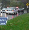 Many residential streets near Manor Park in Larchmont were blocked off by police tape. An officer stationed on the scene said that waves could reach up to five feet in the Sound and that the streets would be blocked off until the storm passed. Angry, grey waves spurting a layer of spray that obscured views were a taste of what the storm would bring later in the day.