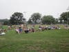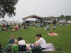 Attendees bobbed their heads and placed their blankets and chairs noticeably far apart from each other, forming a large radius in front of the band shell that reached back to the lighting poles.