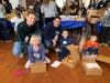 (l-r) Leo Shapiro (Chappaqua) and daughter, and Brad Hanan (Chappaqua) and sons pack holiday baking boxes at UJA Gift of Hanukkah celebration.