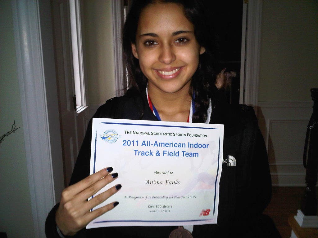Keys to Awesomeness: Anima started running for the track team during the winter semester of her freshman year at MHS. Initially she joined the team to stay in shape, but ended up distinguishing herself as a winner when she won a state championship the following spring.