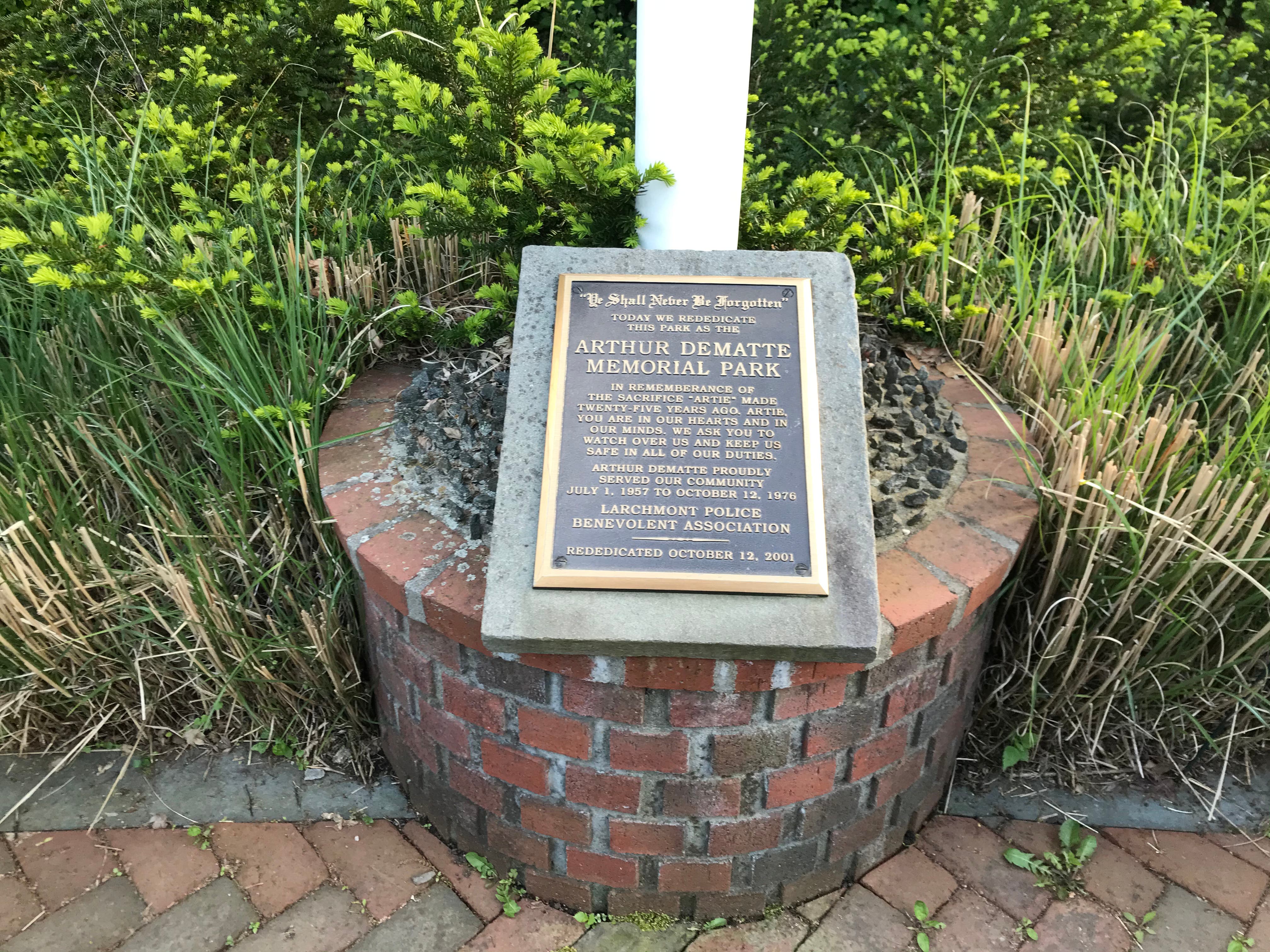 The park was re-dedicated to honor the fallen police officer on Oct. 12, 2001 by the Larchmont Police Benevolent Association to mark the 25th anniversary of his murder. The park is located on a narrow island of land between Palmer Avenue and Parkway Street near where the police officer known as "Artie" by his fellow officers gave his life.