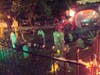 Another fun and relatively easy decoration trick I picked up this year was the "Freshly Dug Grave." You stuff a garbage back with crumpled up newspapers and place it on the ground (preferably in front of a Styrofoam tombstone). You then take a large brown bath towel and drape it over the bag so it looks like there's a large 'lump' of piled up earth. Hold it down with a couple of think metal stakes and then sprinkle dried leaves and some straw over it -- in the dark it looks very realistic.