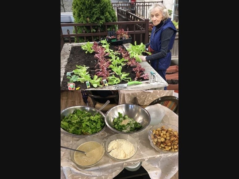 The Bristal at Westbury residents enjoying what they plant: Ann Hoesch a resident of The Bristal at Westbury is one of the residents who have taken part in The Bristal’s Farm to Table dining initiative. The residents under the direction of Robert Borgwald, the Director of Dining Services have grown lettuce, cucumbers and cherry tomatoes which are served at meals and enjoyed by all residents.