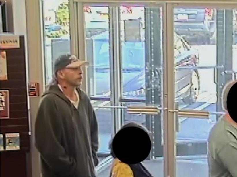 The robber is described as a white man, 35-40 years old, 6-foot-1, with blond hair. He was wearing a blue baseball cap, gray sweatshirt, and jeans at the time.