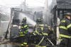 Numerous firefighters, police officers, medical personnel responded to the scene, closing off the surrounding blocks to fight the blaze.
