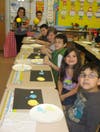 The students then received three sugar cookies in large, medium and small sizes, as well as yellow, blue and white icing. They were instructed to use yellow to cover the sun, blue to cover the earth, and white to cover the moon, and then to place the cookies on a sheet of black paper to show their astronomical positions relative to one another.