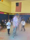 During the assembly, the top three fundraisers from each class chose a color of dry paint to throw on Mr. Squillacioti, who ended up with a psychedelic–colored T-shirt. In addition, students painted other staff members throughout the day as a bonus for their efforts.