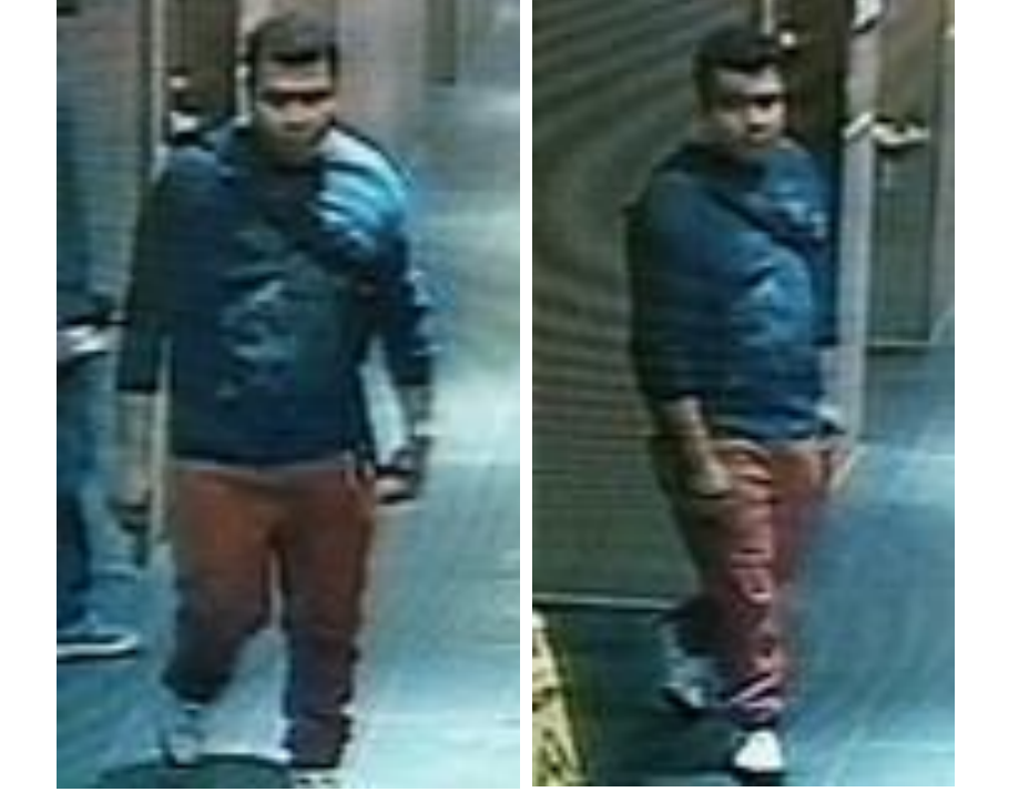 On Oct. 27 at 9:38 p.m., a man entered a lower level men’s bathroom and saw a man, pictured above, pacing back and forth, cops said. The subject left the bathroom but quickly came back in and approached the victim, police said. The man then grabbed the victim’s penis over his clothing before fleeing the scene, cops said.