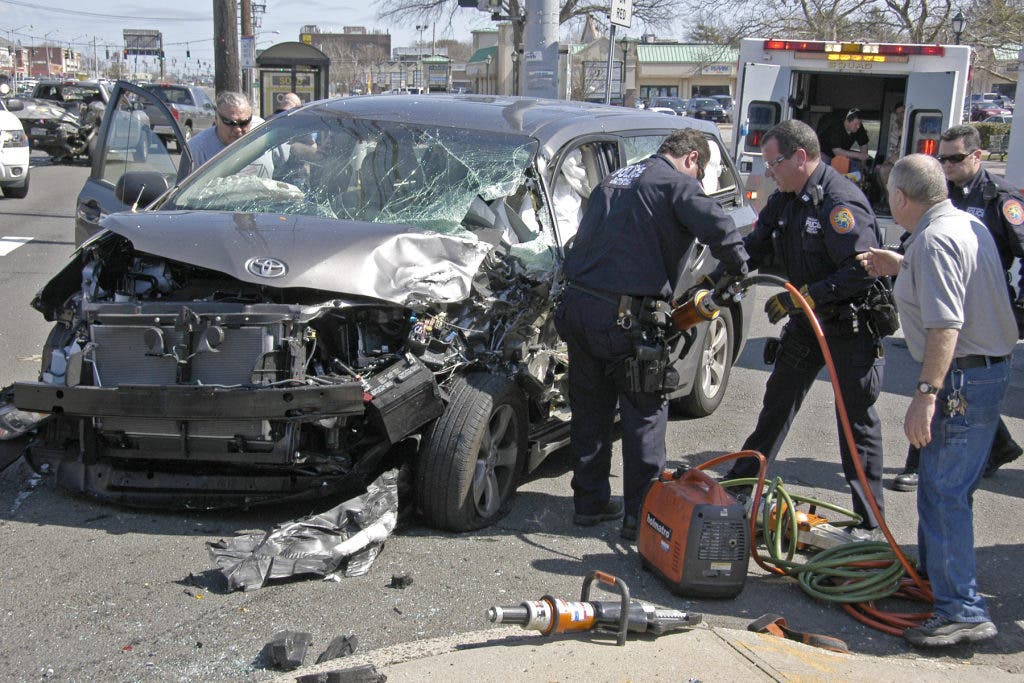 The Nassau County Police Emergency Services Unit had to cut the door from the van to free the female driver. Levittown firefighters assisted in removing the injured and all were transported to Nassau University Medical Center by police and fire ambulances, according to a fire official.