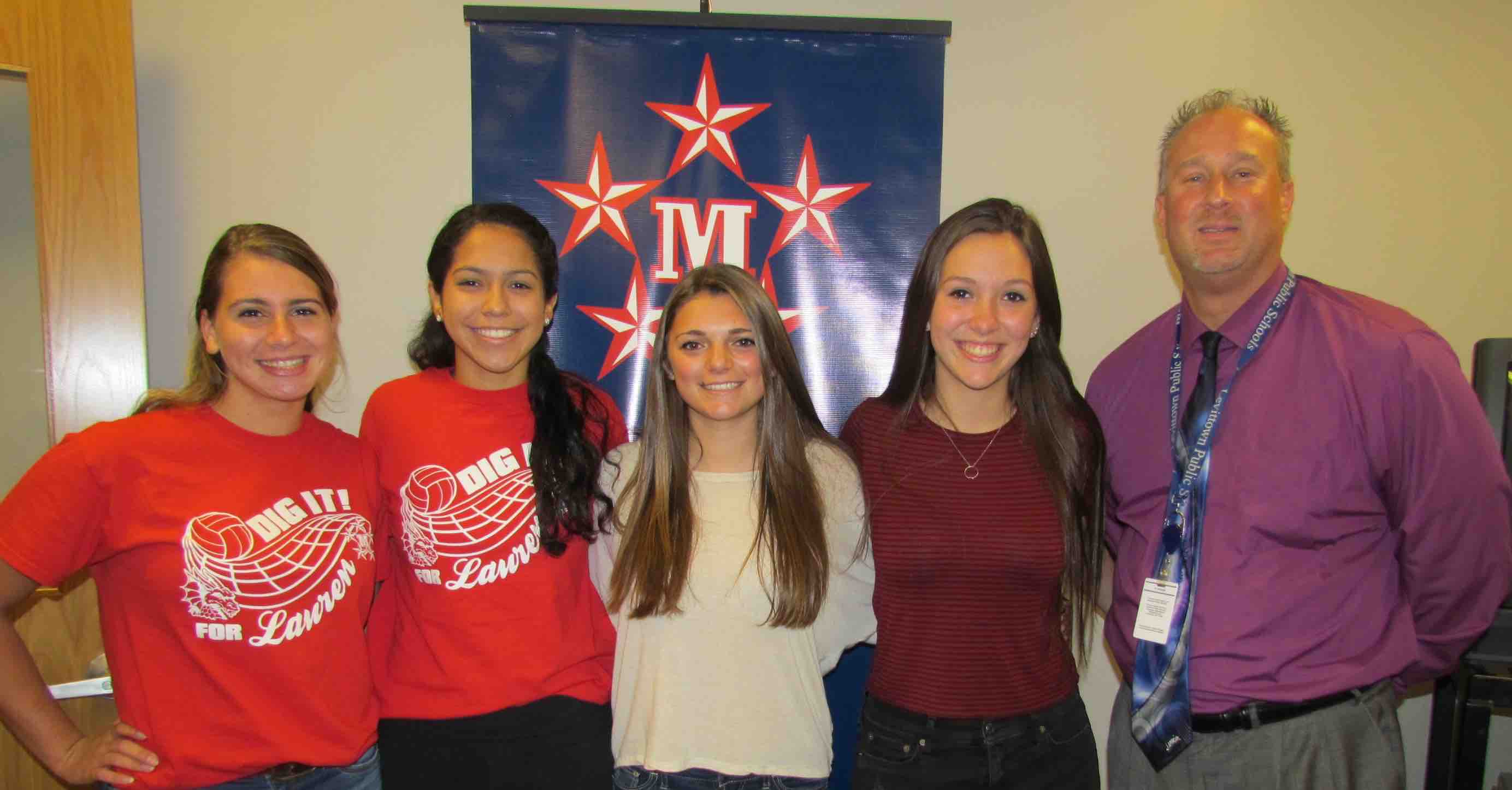Photo Caption: MacArthur High School Principal Joseph Sheehan is pictured with student-researchers (from left) Devin Zeller, Jasmine Chevez, Danielle Pinto and Jamie Aquilino.