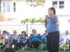 Between numbers he offered up a liberal helping of genially gruff bantering with the audience, and left the outdoor stage for the personal touch.