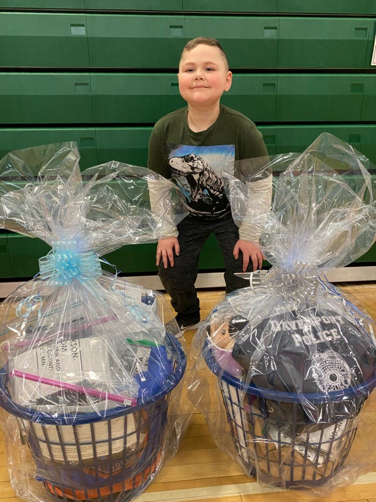 So after telling his gym teacher, Courtney Dietz, how much he liked the police, she reached out on Facebook to ask for memorabilia from various police departments. The response was overwhelming, even reaching police precincts as far as Wisconsin and Michigan. Thanks to her campaign, Jaxson received over 30 badges, 15 to 20 t-shirts, PBA cards, stickers, cards and more. In addition, he even got a special visit during his gym class. On Tuesday Suffolk Police Officer Thomas Joy stopped by the local elementary school and presented Jaxson with a Junior Police Officer hat, Frisbee, T-shirts, a police patch and other items.