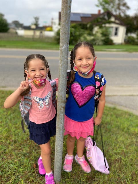 Maya started her first day of Kindergarten while Lily started her first day of second grade at Harding Avenue Elementary School! Photo courtesy of Amy Calderon