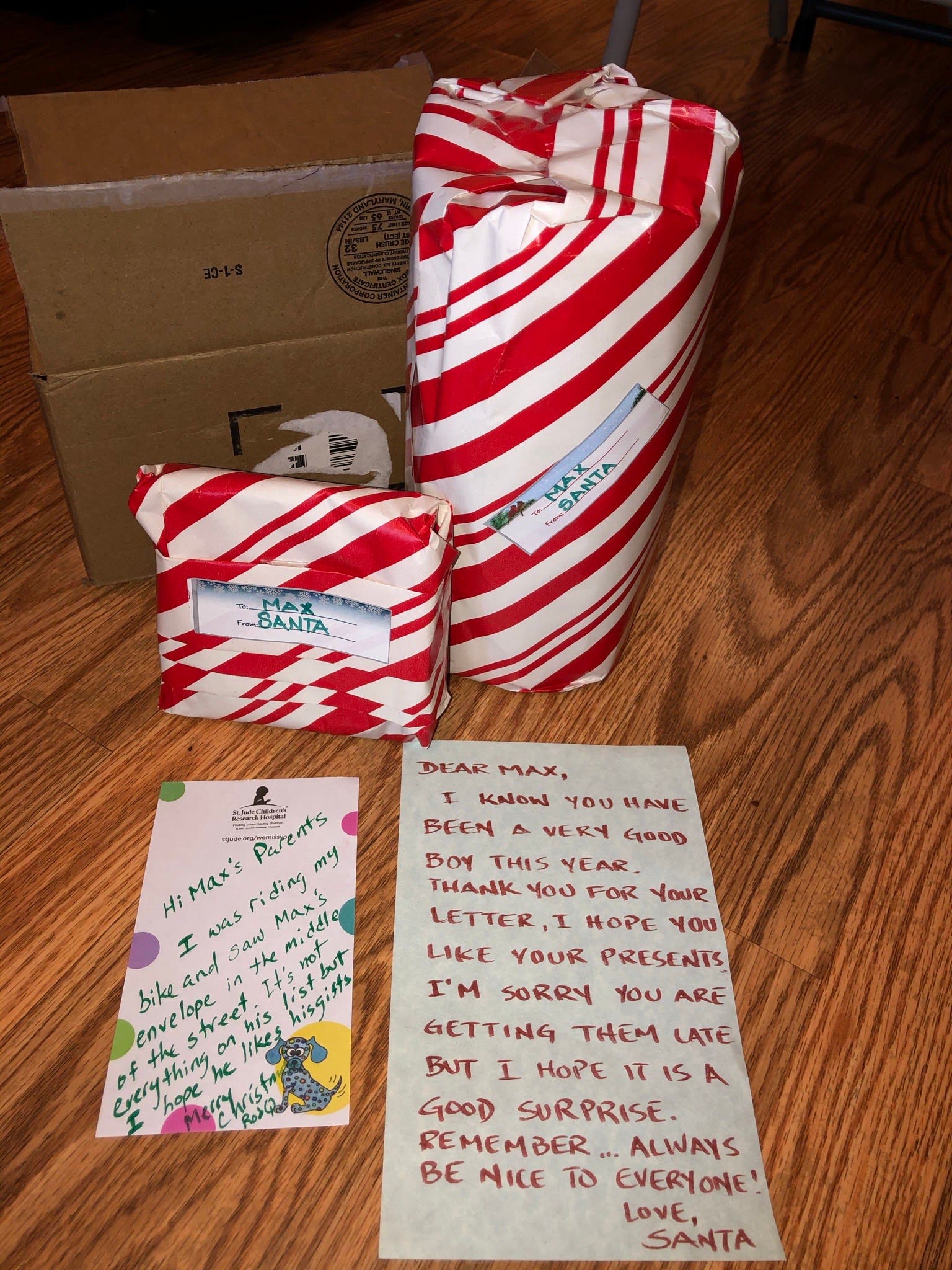 When they opened the package — to their delight — they found that inside were toys and a note from Santa Claus wishing Rodriguez a Merry Christmas.