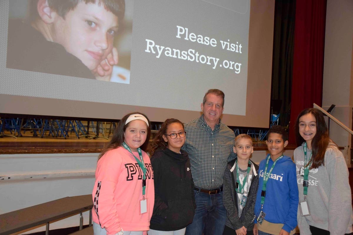 In an emotional presentation that included a slideshow of Ryan throughout the years, Ryan’s father, John Halligan, recounted to the sixth-grade students of Lindenhurst, the story of his son’s life and the ridicule he endured.