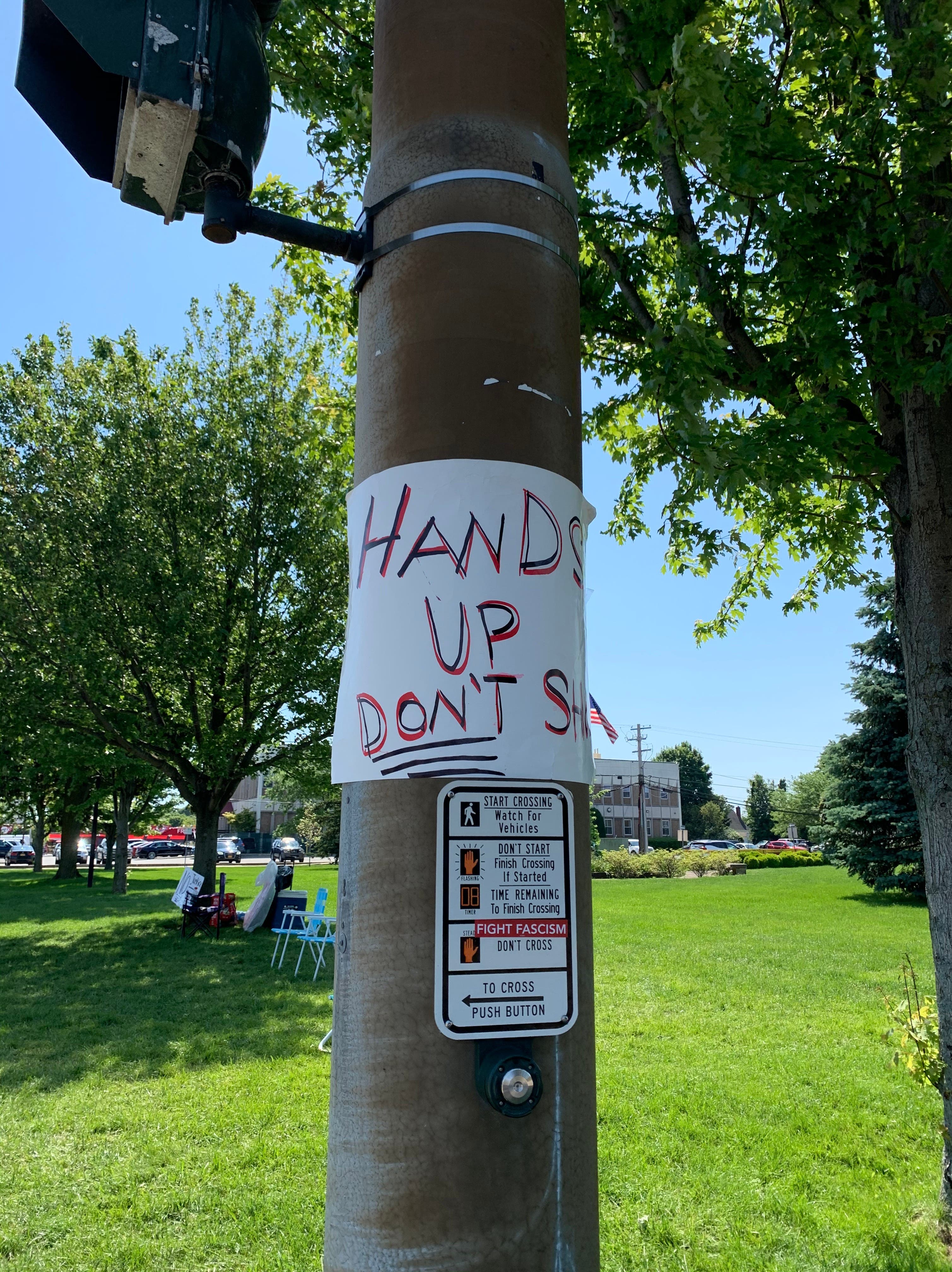 LINDENHURST, NY — A small group of protesters gathered in front of Babylon Town Hall in Lindenhurst on Tuesday. The group held signs with phrases like "We won't stop until you stop" and "Justice for all." As they chanted, some cars passing by on Sunrise Highway honked and cheered in support.