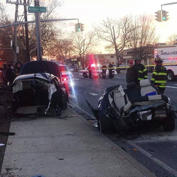 Emergency responders rushed to Long Beach Road near West Windsor Parkway just after 4 p.m. after a report of a two-car crash, according to Nassau County Police.