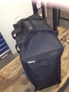 JEWELRY CARRIER WITH WHEELS, POCKETS ON SIDES FOR TOOLS AND PAPERS. RETRACTABLE PULL AND SECURE HANDLE ON TOP. LIKE NEW.