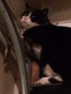 He or she ran into our garage during ice storm and is now hiding in there. Poor baby is scared and confused. Looks to have been lost and living outside for a very long time.