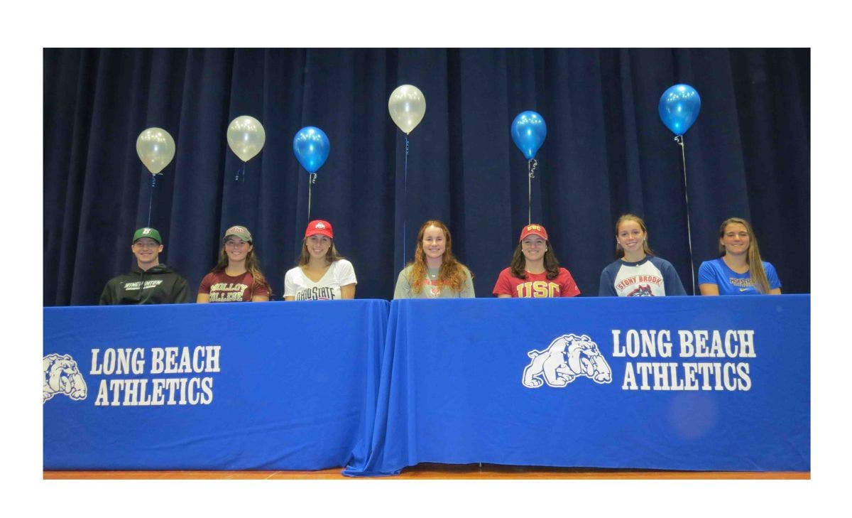 Seven Long Beach High School seniors have signed letters of intent to continue their athletic participation on college teams. This accomplishment reflects the student's’ determination in their respective sports, leadership and teamwork skills and dedication to their academic studies.