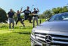 Caption #2: Pictured is a foursome at ACLD Foundation's Golf Outing jumping for joy at a chance to win a lease for a new Mercedes E300 sponsored by Enterprise Fleet Management.
