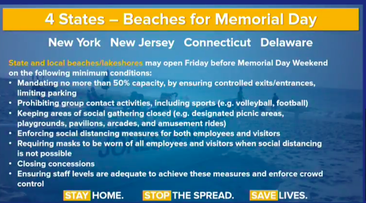 As beaches reopen, they are doing so under new guidelines in the age of the coronavirus: capacity at all beaches is being limited to 50 percent. Beachgoers are going to have to maintain social distancing from people who don't live with them, and they're also going to have to wear face masks when walking around.