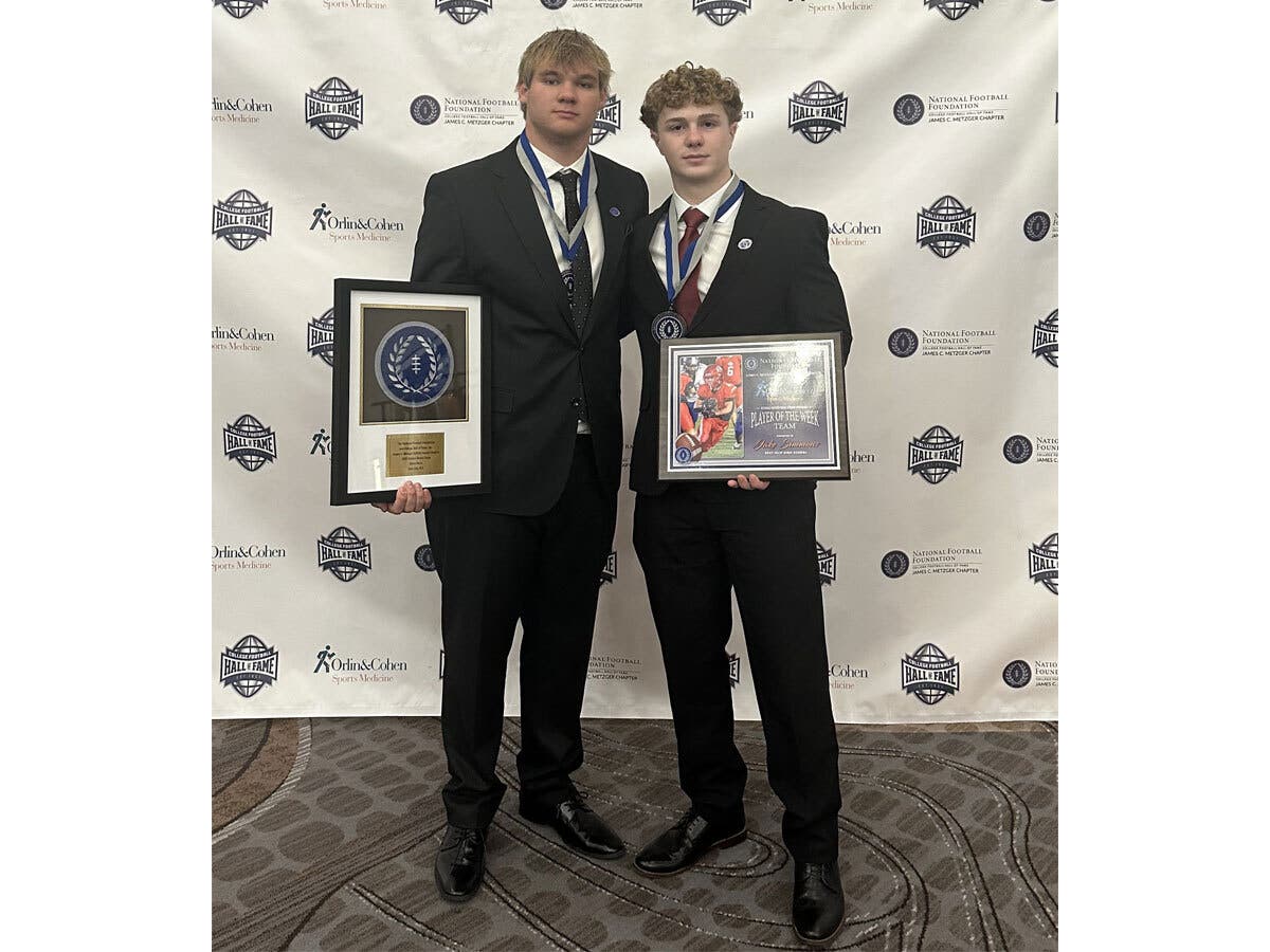 Two East Islip High School football standouts were recognized among the county’s best at the National Football Foundation’s Suffolk County Chapter Scholar Athlete Awards Brunch, held April 19 at the Melville Marriott.