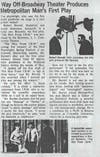 During the 1920s, Malverne was home to many vaudeville sensations and other performers, including Frank Britton Wenzel, who had an illustrious career in show business. The Malverne Club Players, the first community theater group in the village, was established in 1921 and staged productions for two years until the curtain fell on their last show in 1923. For decades, the village was without community theater until a group of thespians led by Sal Zaccaro formed the Malverne Theatre Company in 1966. For over four years, the company, under Zaccaro's direction, put on noteworthy performances, including"Oedipus Rex," "Anastasia," "The Odd Couple," "Finian's Rainbow," and several original one act plays at its spring art festivals. An article in the Malverne Herald published in May 1968, described the theater company as "a mecca for playgoers who demand the best productions right at their door." The group also attracted the attention of other news outlets including Newsday, The Long Island Press, and The Helm-Review. Despite its success, the company disbanded in 1969.
