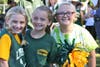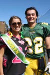 During the pregame festivities, senior cheerleaders, kickline members, football players and their parents were invited one by one onto the field for recognition.