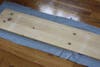 Lay the fabric down on a flat surface with the good side down. Lay your shelf on top and cut around the shape, leaving at least an inch or so. Use a ruler and a pencil to mark a straight line. If you are hanging the shelf high, you might want to cover as much of the wood as possible, so leave a good amount of fabric to work with.