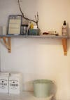 I happen to have some extra shelves laying around the house so I decided to put one by my pantry area. I needed a little space to keep vitamins, pads and other small items. Since the wall was bare, I figured a shelf would do the trick.