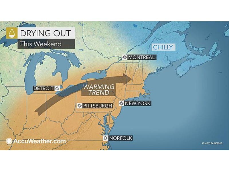 The rest of Friday will see temperatures rise to the mid-50s with a chance of showers and thunderstorms, mainly in the evening. Things will dry up by Saturday with sunny skies and mild temperatures the story for the weekend.