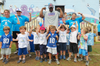 Campers at Rolling River Day Camp in East Rockaway spent the afternoon of July 24 cheering for "Big Blue" and practicing football drills with two-time Superbowl Champion and NY Giants offensive lineman, Kevin Boothe. Many campers participated in a variety of football drill stations led by Boothe that included a football toss, punting practice and an agility obstacle course. Boothe stated it was a great preview for Giants training camp, which started at the Meadowlands Complex in New Jersey on July 26.