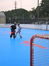 Tom is a resident of Lynbrook and has been involved in Lynbrook recreational and athletic activities for several years. He was very excited about the new surface, assuring that it is much easier to play on and that it will be a wonderful addition to the already fun-filled, family oriented activity. All the attending players agreed with positive responses, adding the only downside was it may be a little slippery after the rain. Aside from that, they feel like they are almost playing on real ice! Tom went on to explain how the early sign-ups are great because it allows potential new players to meet others and get a feel for the game.