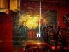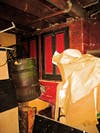 In this room, there was a wooden bar that would act as the conduit between thirsty patrons and their vice. The walls are red and still retain their vibrant color, despite being painted over 80 years ago. Hand-painted frescos decorate these walls, though one has been completely covered by a walk-in unit. One and a half are still visible and depict scenes of beach fun and fine dining.