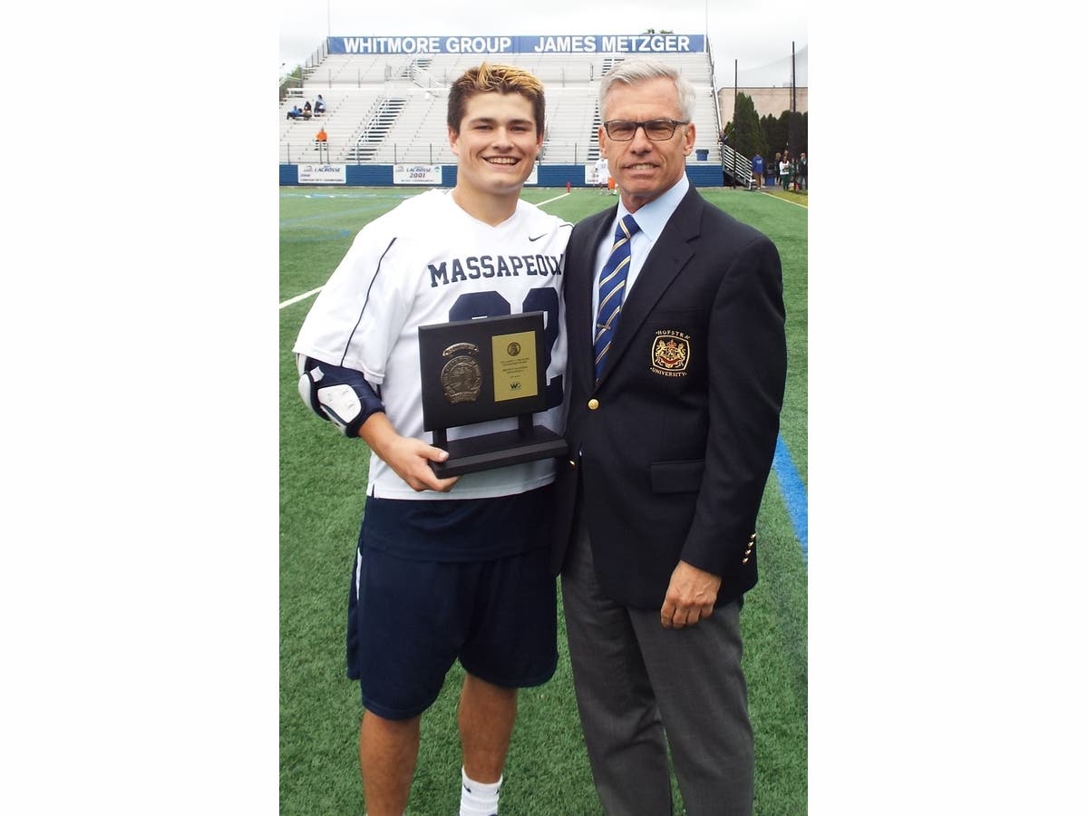 The awards were presented personally by James Metzger, a Long Island high school and college lacrosse star. Metzger set assist records (82 in one season) and won many awards during his days at Half Hollow Hills East High School, including All-American honors and the 1977 Ray Enners Award for outstanding Suffolk County lacrosse player when he scored 102 points. Metzger also starred in football and played varsity basketball as a sophomore in the Suffolk County playoffs.