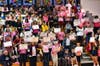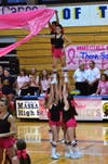 The JV and Varsity played before a packed gym full of fans dressed in pink. Many held up signs with the names of friends or relatives who’ve been touched by the disease.