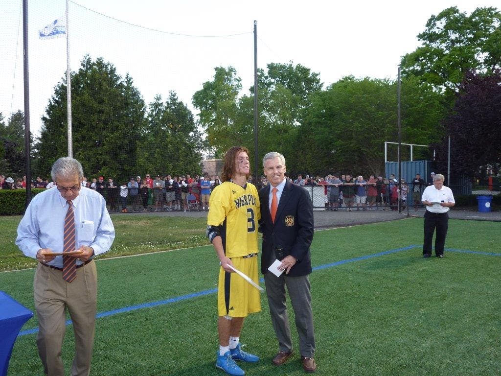 Representing Massapequa High School, he captures leadership award at Nassau County boys' lacrosse finals.
