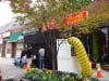 The entire front of the bar was engulfed by large black tarps this afternoon, as filming of a night scene was taking place inside.