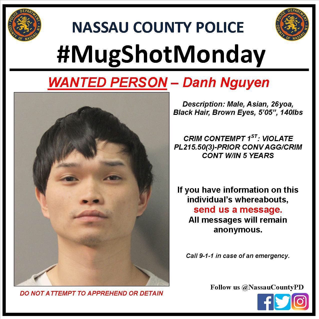 The Nassau County Police Department always has alleged criminals that officers are looking for. Each week, the department releases the mug shots of those that are at the top of the list. And you can help the police catch them.