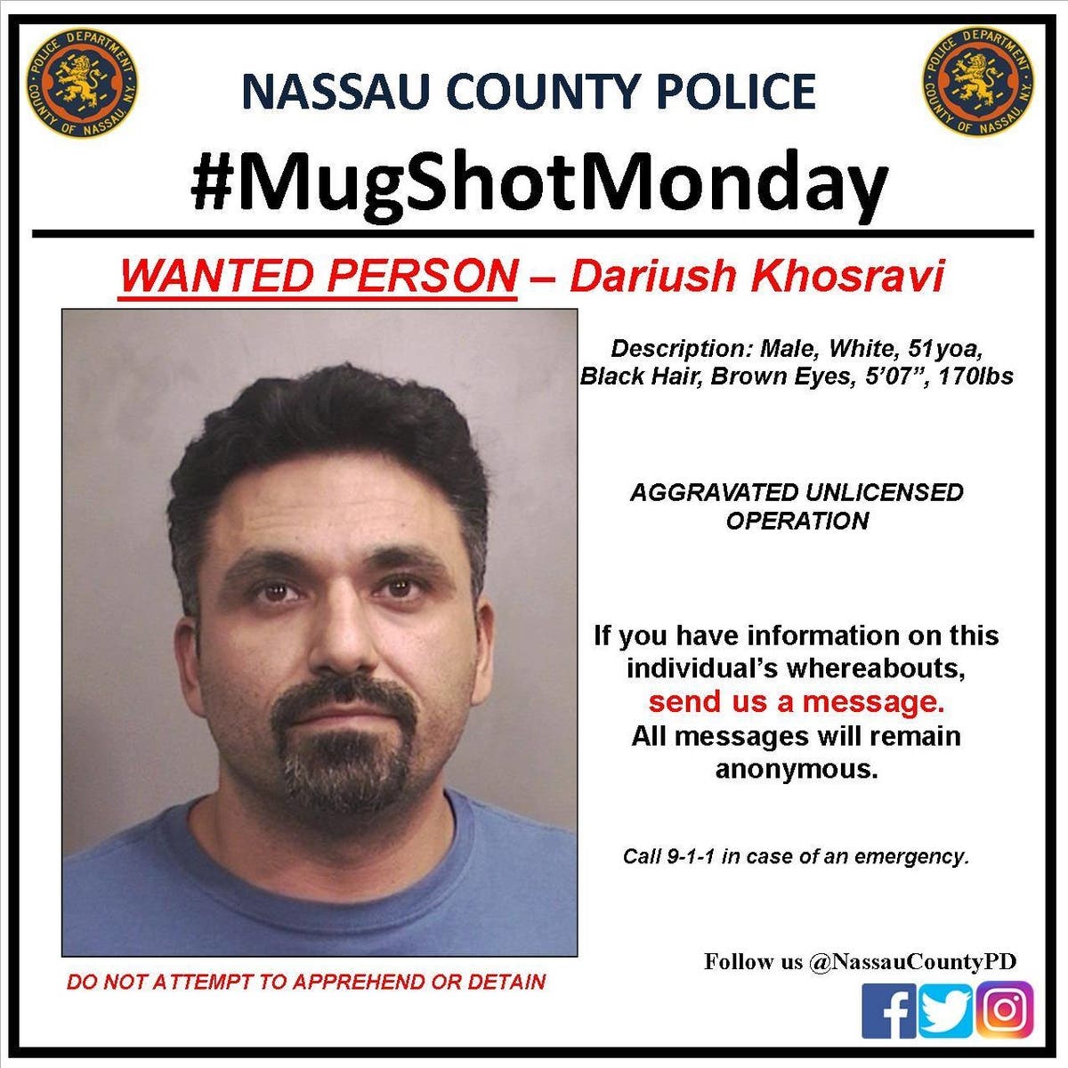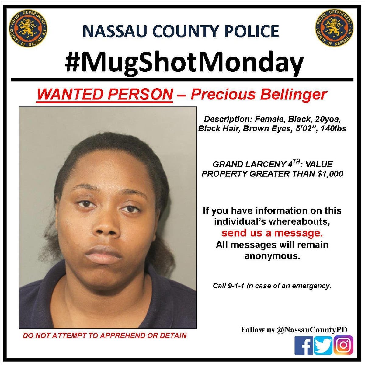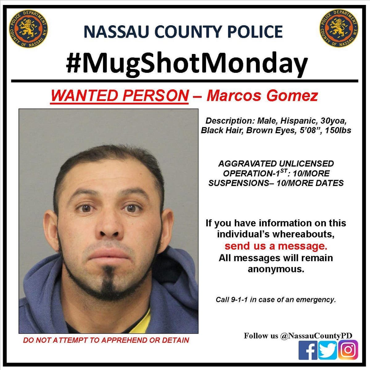 The Nassau County Police Department always has alleged criminals that officers are looking for. And each week, the department releases the mug shots of those that are at the top of the list. And you can help the police catch them.