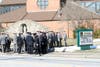 The funeral, which took place at , was standing room only for more than an hour before the Mass was scheduled to start. As the procession pulled up to the church, a hush fell over the crowd, which continued as mourners listened to the Nassau County Fife and Drum play “Amazing Grace.”
