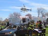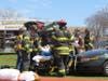 One victim ends up on the hood of a car, DOA, while the driver staggers out of the car obviously under the influence. The Massapequa Fire Department handles extrication, patient care and removal of victims utilizing heavy rescue vehicles and the Jaws of Life, while the Nassau County Police Department simulates a DWI test and subsequent arrest. An NCPD helicopter landing simulates a medical evacuation from the scene.